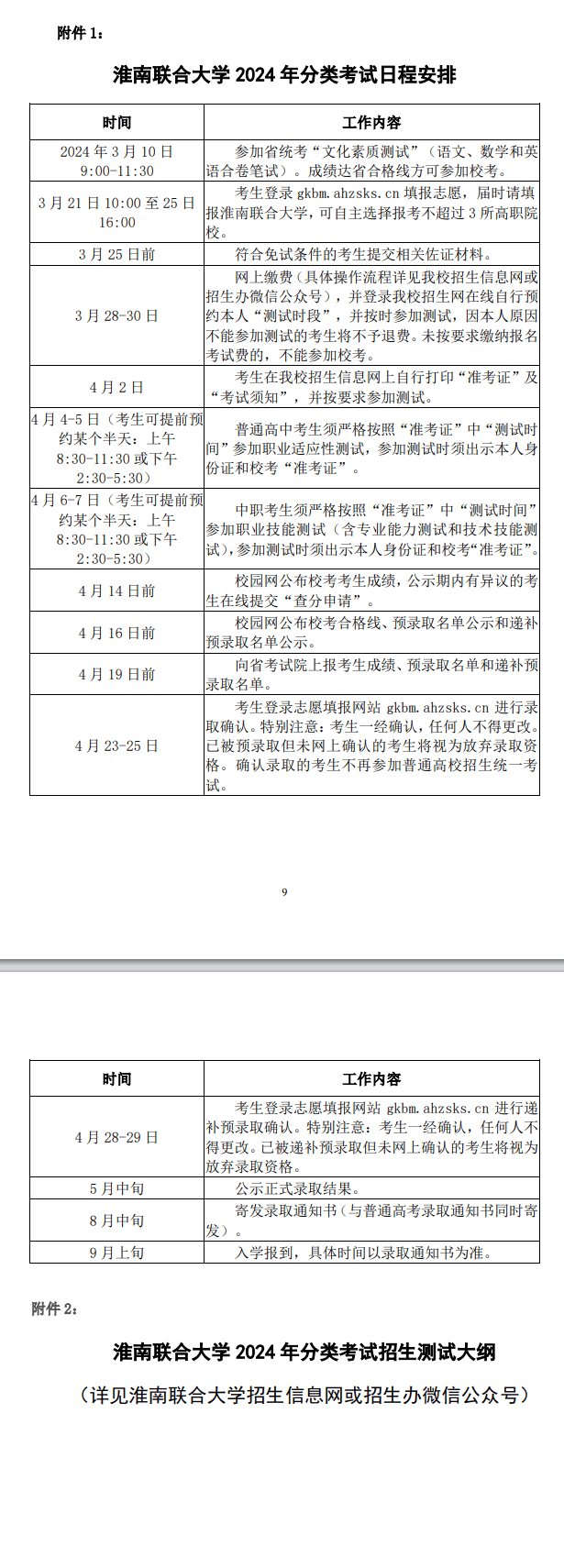 淮南联合大学2024年分类考试招生章程